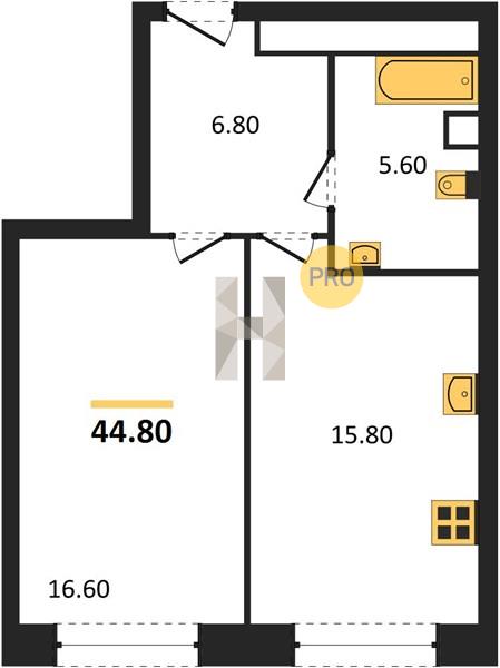 Площадь от 44.8 м2