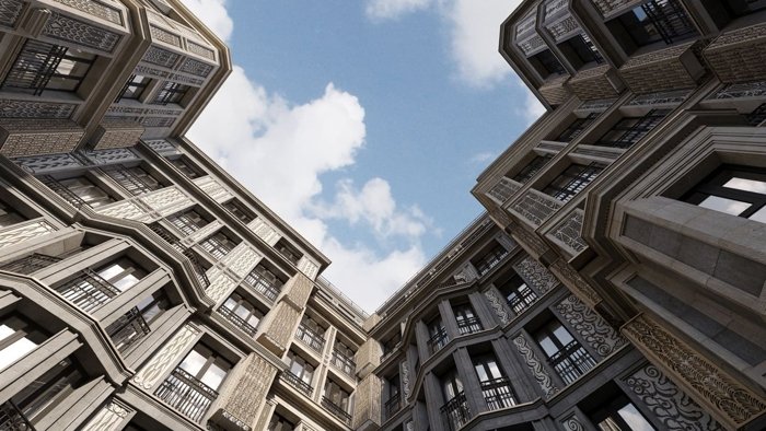 стоимостьАрхитектурный облик здания вдохновлён образами петербургского модерна и французского ар-деко. Жилые секции образуют парадный двор-курдонёр, ограниченный с трёх сторон и раскрывающийся в сторону 12 линии. Во дворе выполнено благоустройство и ландшафтный дизайн по авторскому дизайн-проекту.