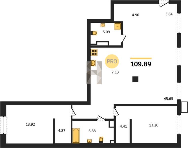 Площадь от 52.13 м2
